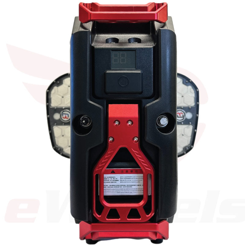 The 134V Commander Pro is the next generation of the large battery capacity Extreme Bull Commander. In many aspects, the CommanderPro share a significant amount of commonality with the Sherman-S—arguably created by Extreme Bull/Begode specifically to compete with the success of the Sherman(-S)—sharing a similar dual-piston suspension design, & build, EB has taken the approach of one-upmanship in making their machine with higher voltage to yield a higher speed potential, addition of Bluetooth speakers & upgraded acrylic CNC pedals.