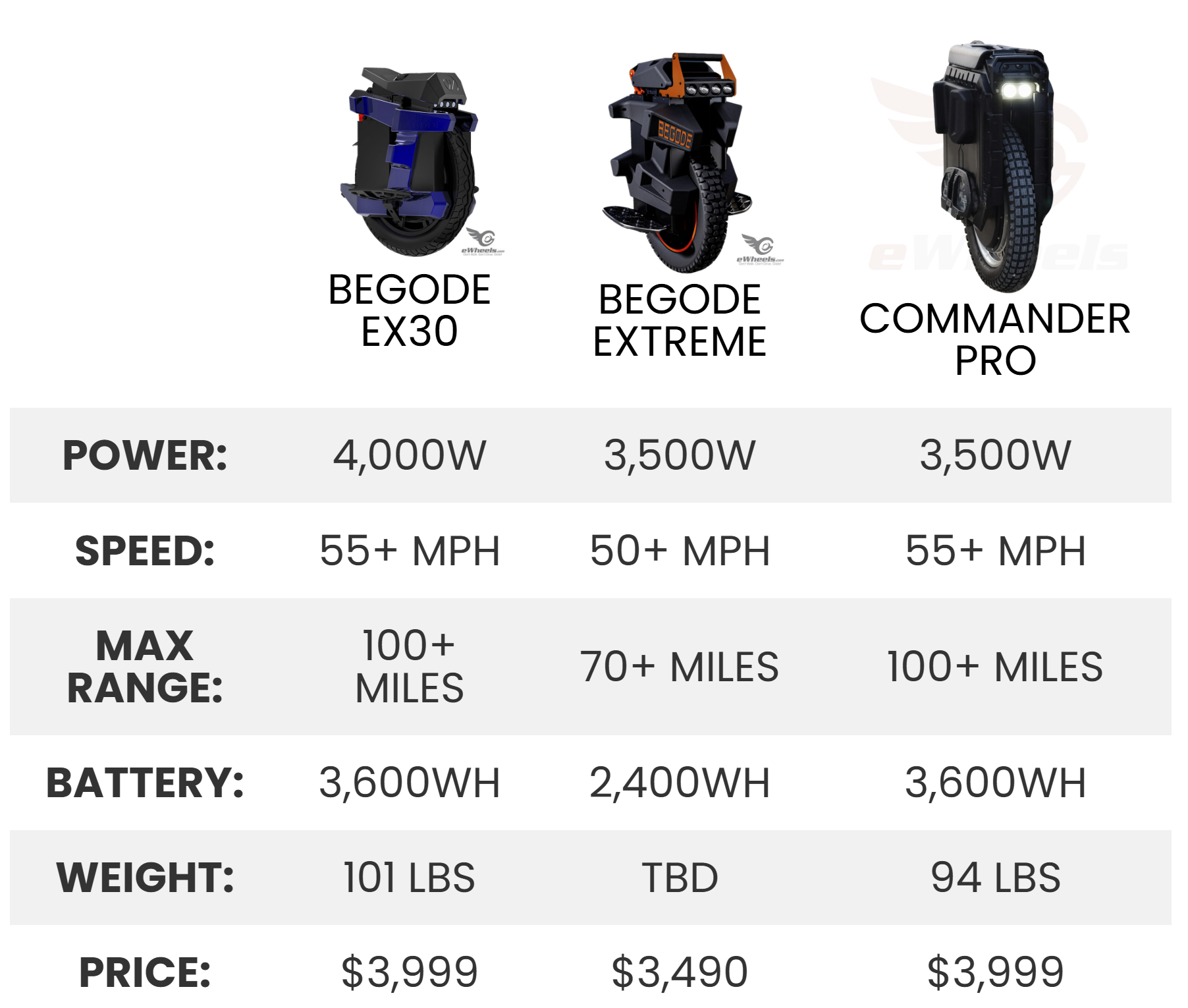 - 134V 3,600WH system rivals the Begode EX30, Veteran Sherman-S, and Veteran Patton