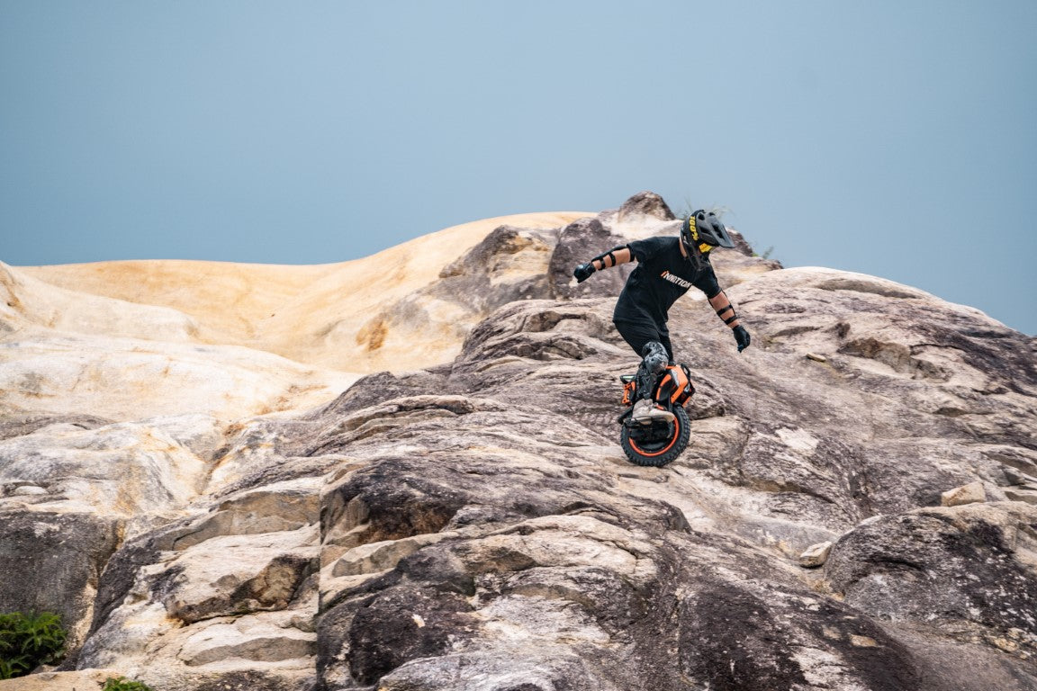 The V14 motor was designed to have the highest torque of any 12″ motor/16″ tire Wheel made today. When selecting an electric motor in a given Wheel, there’s an inevitable trade-off to achieve the design objectives as an ‘off-road’ Wheel. While the V14 has superb torque for hills & quick acceleration, its motor efficiency optimization is shifted towards the higher rotational speeds within the 37-43.5MPH range, most other models have peak efficiency at lower speeds. This does not mean the range is better at higher speeds, as the power required to overcome wind resistance is much greater. Assuming a 170lb Rider is cruising at 25MPH, on flat terrain, based on Rider test results, one can expect a range of about 50-60 miles.