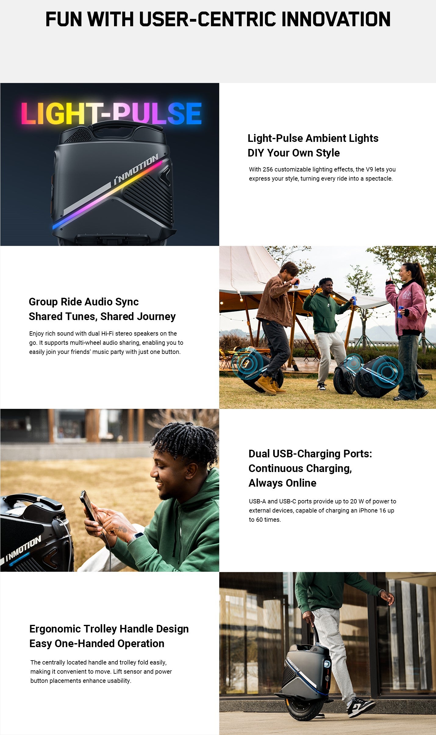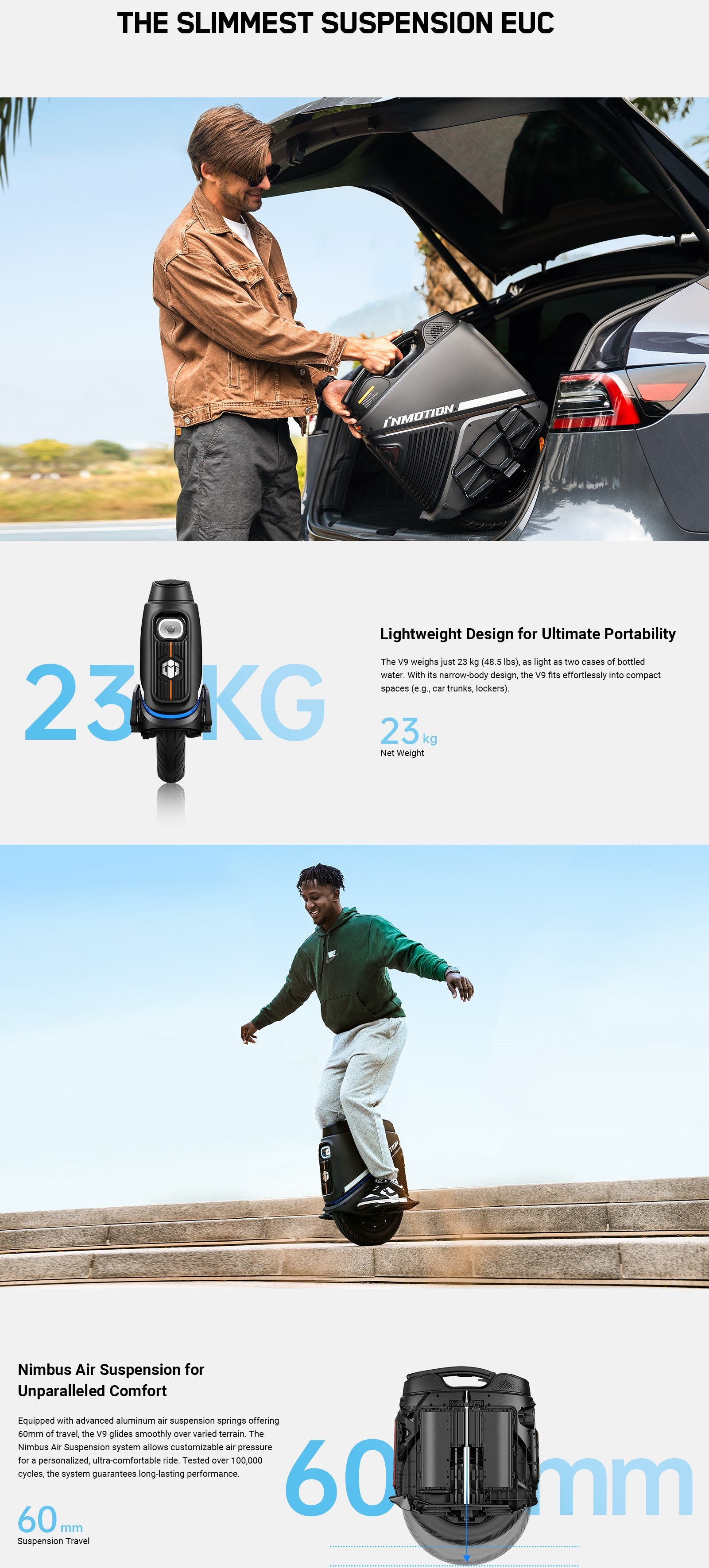What's New: Inmotion's latest beginner and commuter-friendly wheel, sporting a low weight of 51lbs (the lowest of any suspension wheel!) and a full suite of convenience features