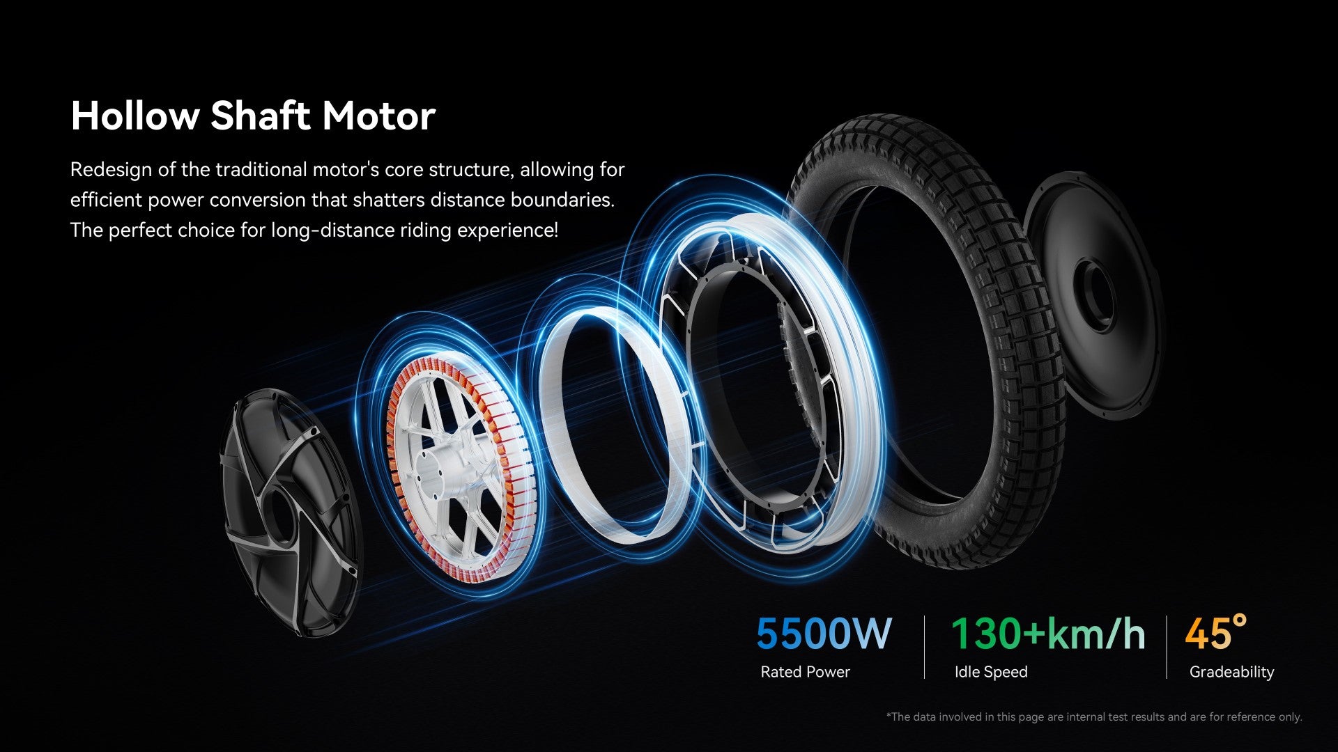 Motor: 5,500W C38 tile motor offering excellent torque and a high rotational speed thanks to the Wheel's 176V system voltage.