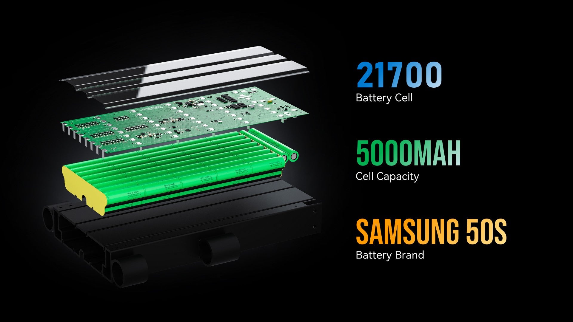 Battery Pack: high-power Samsung 50S 3,108Wh/176.4V battery pack, with SmartBMS, capable of rapid-charging at a whopping 20A/3,520W! The included charger is the fastest stock charger on the market at 10A, capable of an 80% charge in under 2 hours.