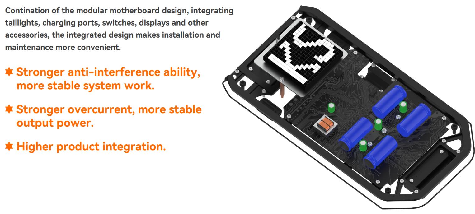 - Battery Pack: 1,480Wh/84V Samsung high-power 50S battery pack, with SmartBMS