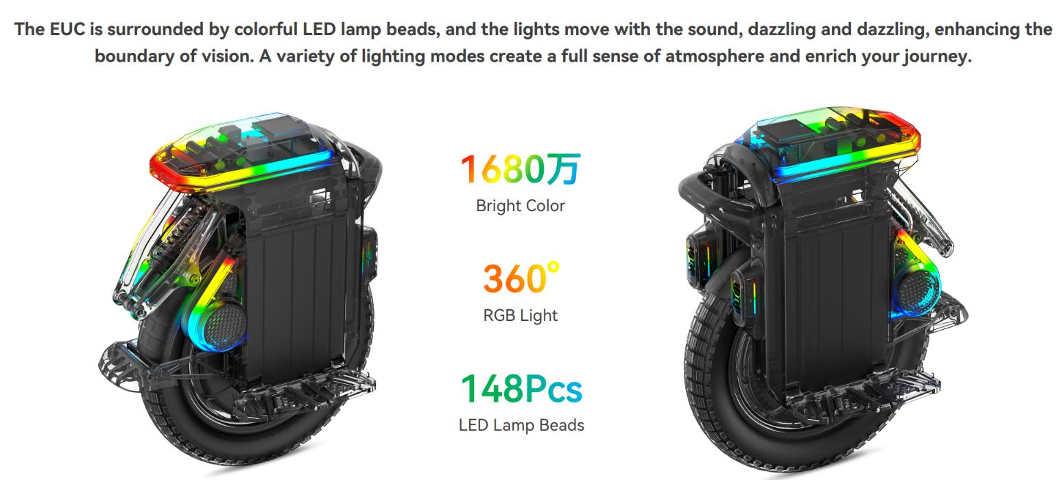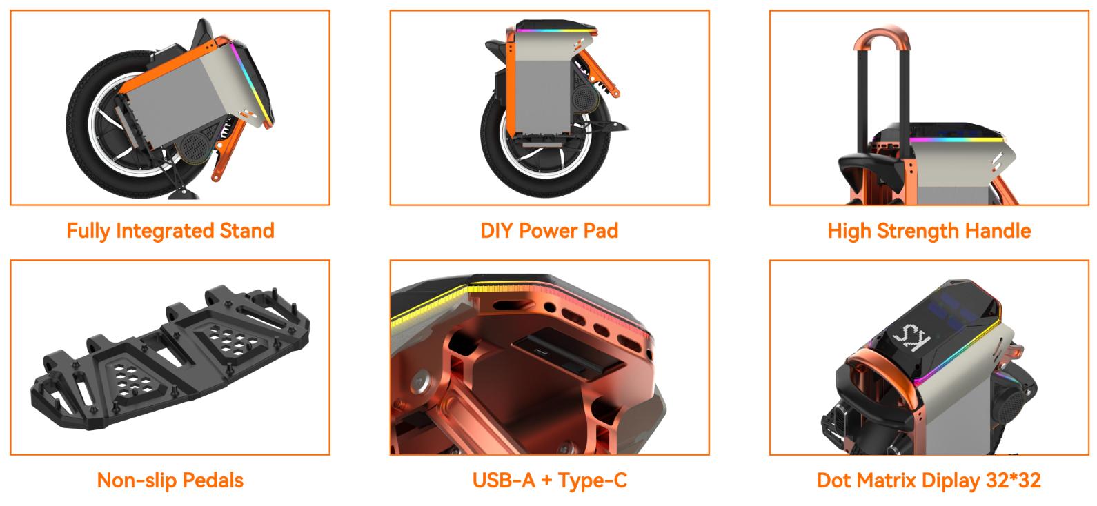 - Other features: 2x 15W + 10W tweeter speakers, 148 atmospheric LEDs, large grippy pedals, integrated kickstand, & USB-C charge connector