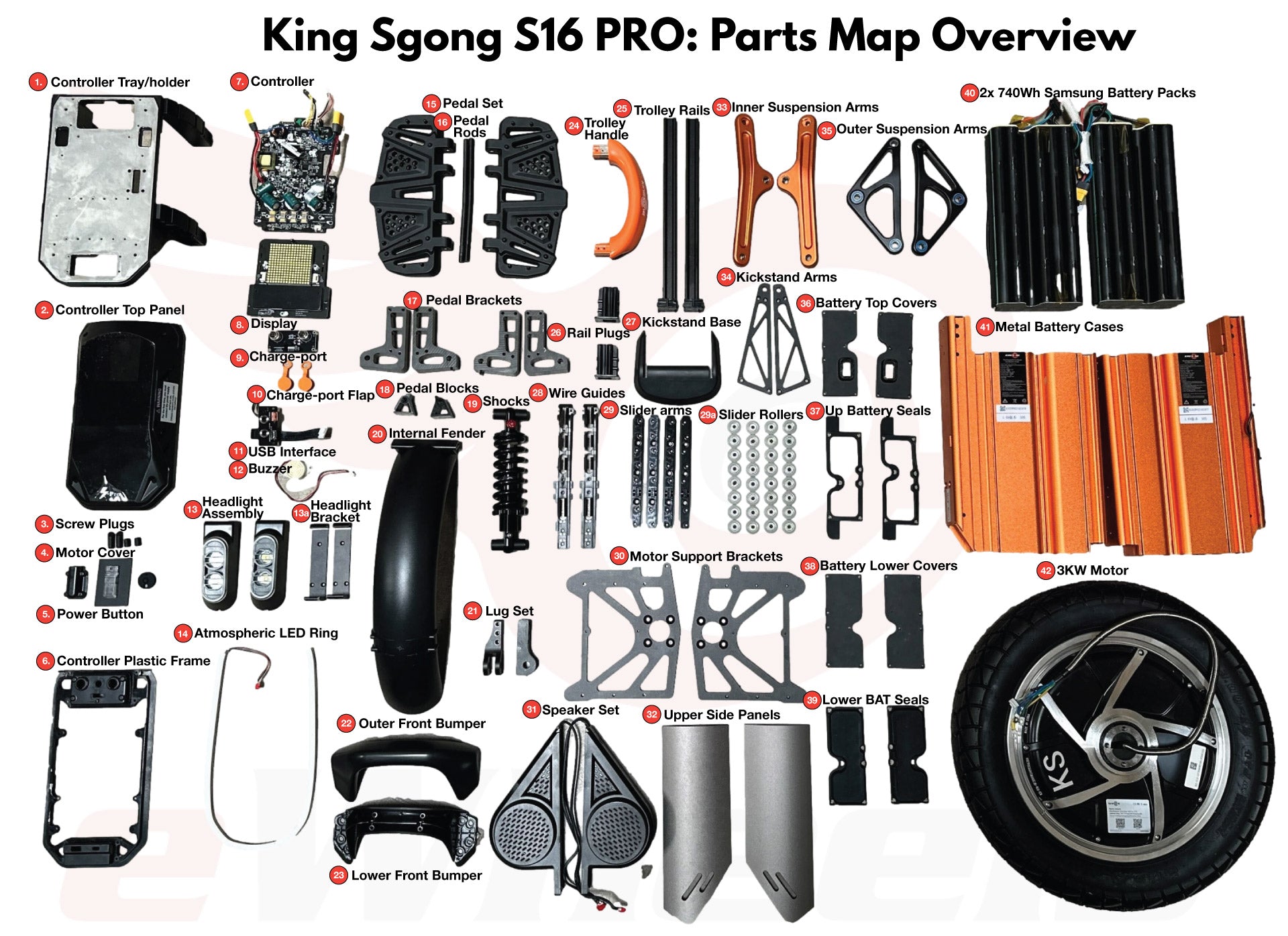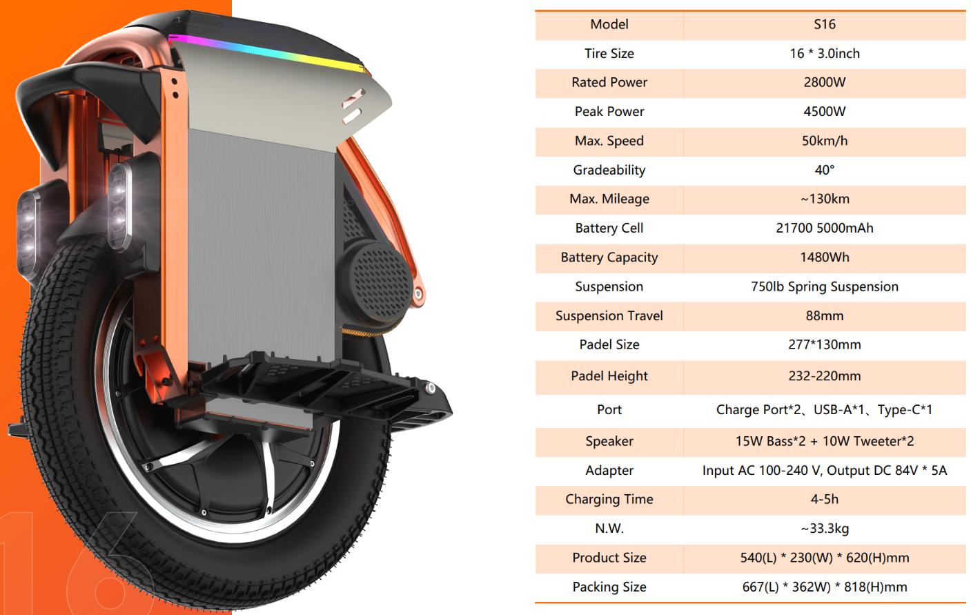 - S16 PRO Update: upgraded motor 3KW motor (from 2,800W) & high-power Samsung 50S battery cells to achieve a +6 MPH boost, from 31 to 37.3 MPH