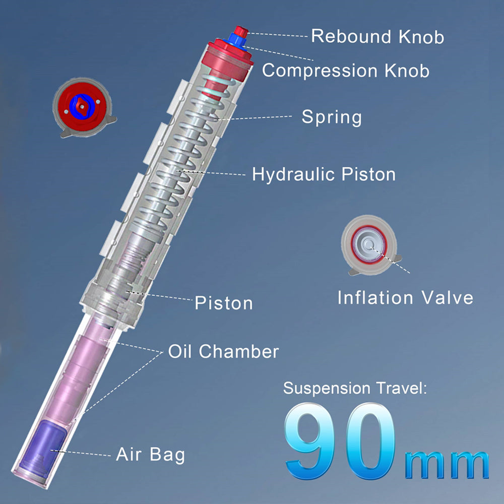Suspension: the new shock system incorporates both compression/rebound functions on both sides providing a smooth, more predictable ride, & a lower air chamber for fine-tuning preload adjustments.