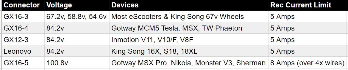 Variable Current: on the side of the charger is a Current selector, where you can set the Amperage power output level. This charger is intended for eScooters, such as the Turbowheel Swift & Dart, with at least 65x cells configured in a 13s5p format. Even setting the charger to the 5A output supplies power @ only 1A/cell, well below the standard charge rate of 1.25A/cell.