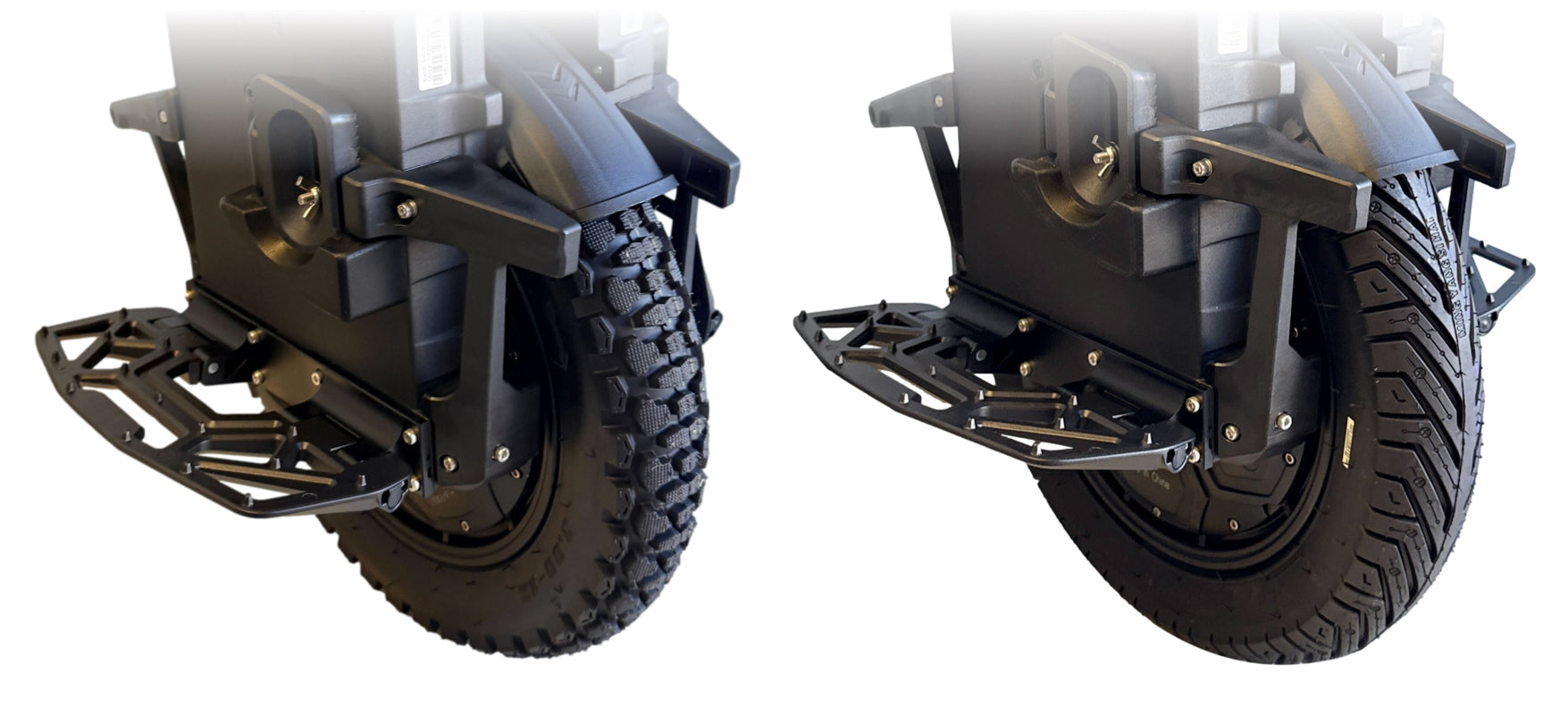 All Patton-S units now ship with either a tubeless knobby or tubeless street tire pre-installed. The knobby tire will perform well on all types of terrain, while the street tire provides superior on-road handling.