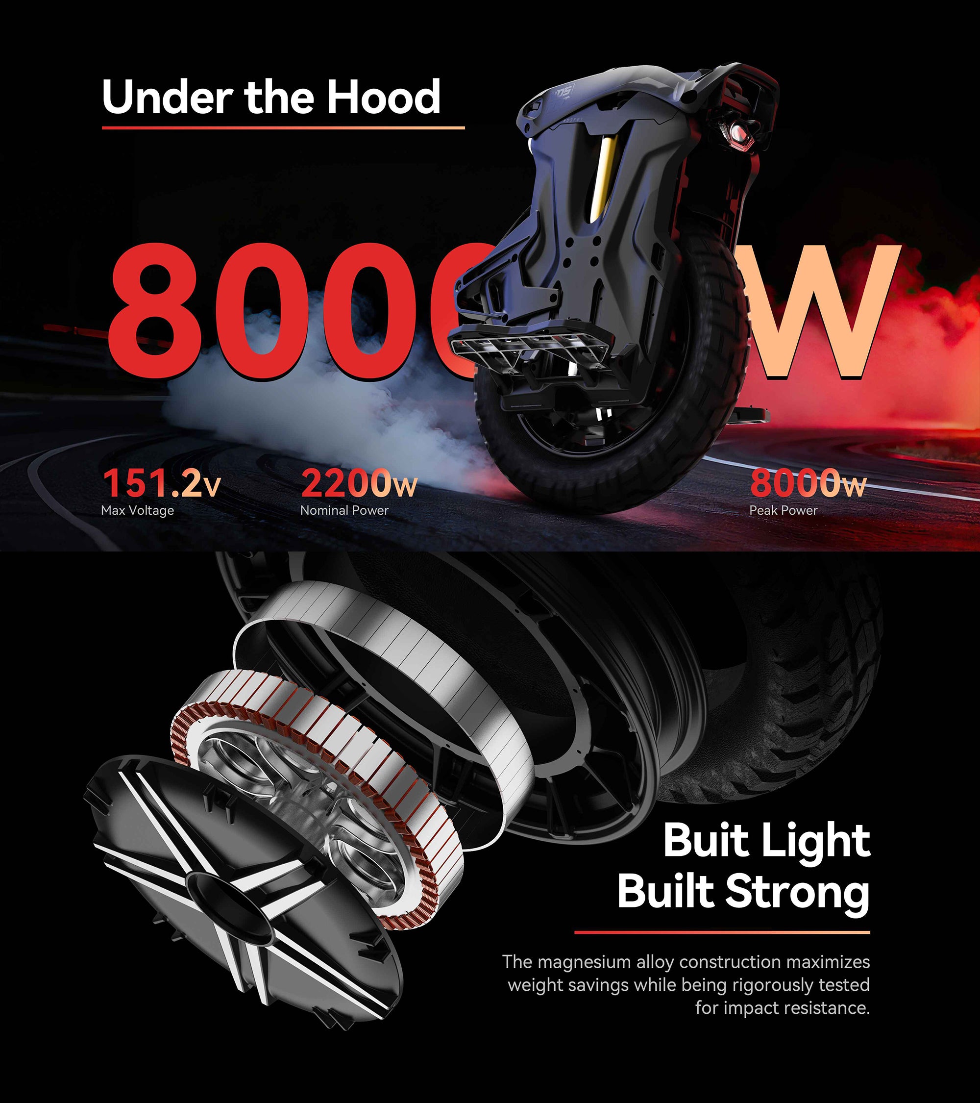 • Motor: 2,200W motor, ~40 MPH maximum speed (5MPH higher than Aero) , providing an excellent balance between rotational speed, Wh/mile efficiency, & torque.